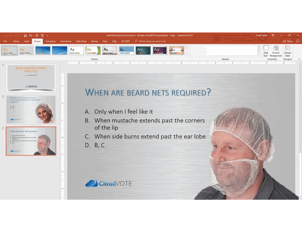 Utilize the design strengths and familiarity of PowerPoint to and create the course content that you need for your training. Import the PPTX file to CloudVOTE and convert it to a protected Template, which can be assigned any LMS tracking information (metadata) such as “Course ID”. Review and configure your slides and finally assign/distribute the Template to those departments or individual trainers who need it.
